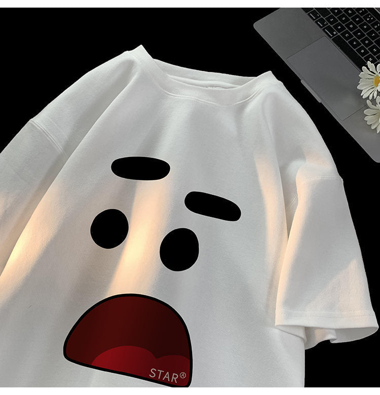 Casual Half Sleeve Oversized Couple Loose Easy To Match Clothes Short Sleeve